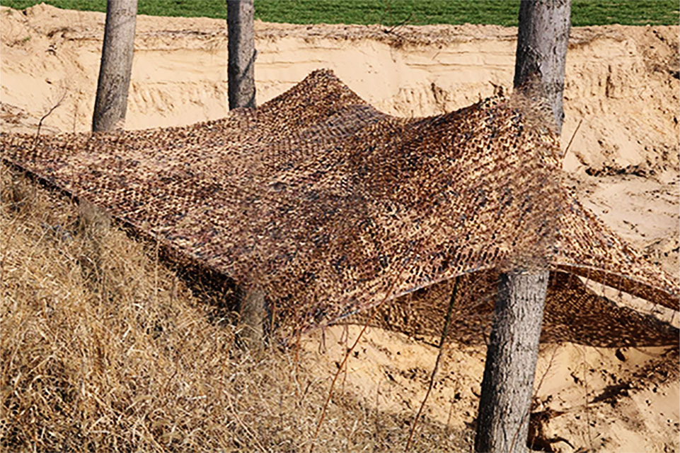 偽裝設備包括偽裝網,偽裝套和全套障礙物等。偽裝網,尼龍材料和防止光學偵察的聚氯乙烯制成的偽裝網,或合成纖維,聚氯乙烯,金屬線等制成的偽裝 (防光學,熱紅外,反雷達偵察等)網絡。 迷彩覆蓋布,用于防止光學偵察的黃麻覆蓋布,或其他經過防火處理的織物制成的迷彩防水布等。全套屏障是由上述迷彩網和輕合金,塑料制成的支撐系統組成的特殊屏障。 和其他材料。 屏障表面的顏色和圖案根據背景特征分為林地型,沙漠型和雪型。 土地類型等。